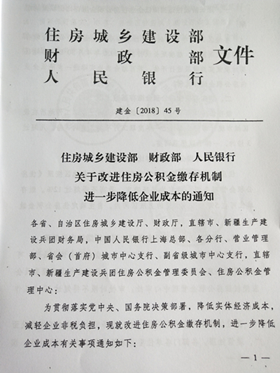现将《省住房城乡建设厅、省财政厅、中国人民银行南京分行转发住房城乡建设部、财政部、中国人民银行关于改进住房公积金缴存机制进一步降低企业成本的通知》(苏建金管〔2018〕282号)转发给你们,请结合实际贯彻执行。